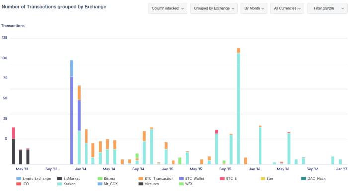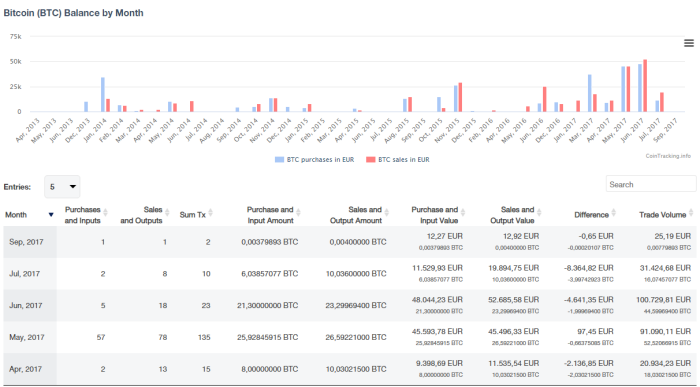 Your total number of all your trades and transactions grouped by exchange, trade-group and transaction type as well as by day, month and year.