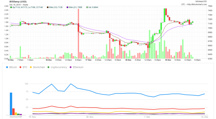 Experimental Bitcoin analyses, EMAs and search engine trends.