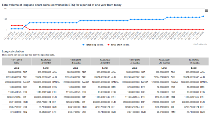 The Long & Short Report displays your coins' individual holding period and shows which and how many assets can be sold at a reduced rate of taxation.